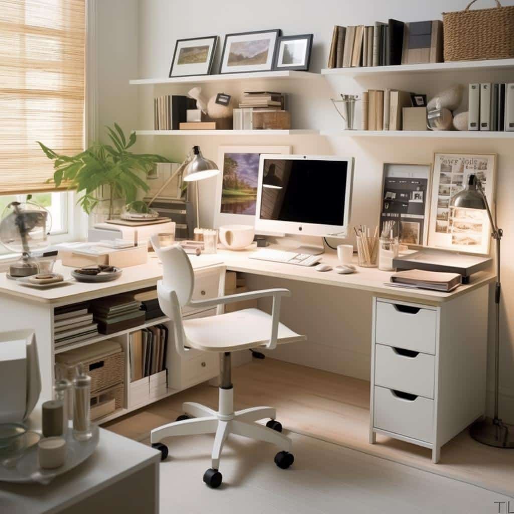 A organização é fundamental para manter a produtividade em um mini escritório. Por isso, dediquei um tempo para organizar meu espaço de trabalho de forma eficiente. Utilizei organizadores de mesa para guardar canetas, papéis e outros materiais de escritório. Também coloquei um porta-retratos com uma foto da minha família para me motivar durante o trabalho.