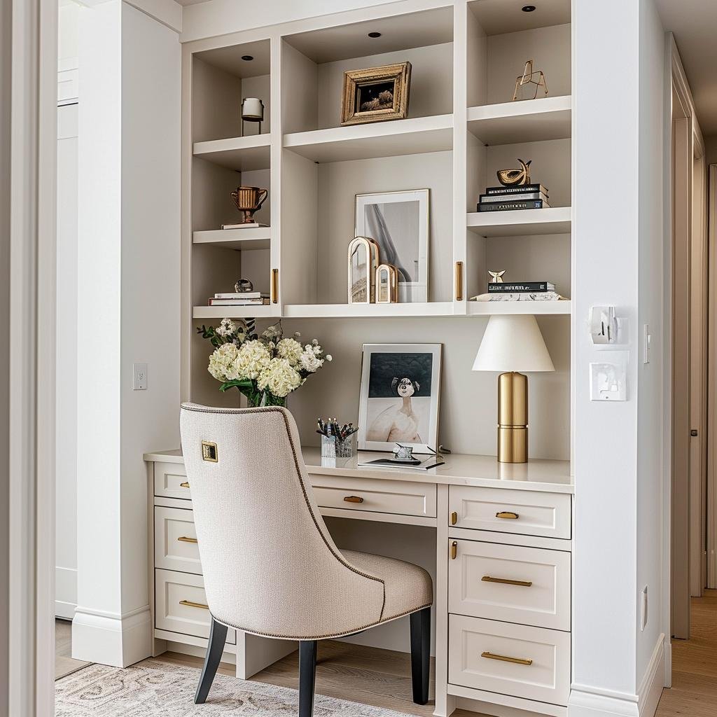 Prateleiras e nichos são ótimas opções para aproveitar o espaço vertical do meu mini escritório. Neles, posso colocar livros, plantas e objetos decorativos que trazem personalidade ao ambiente. Além disso, esses elementos ajudam a manter a organização, deixando tudo ao meu alcance.